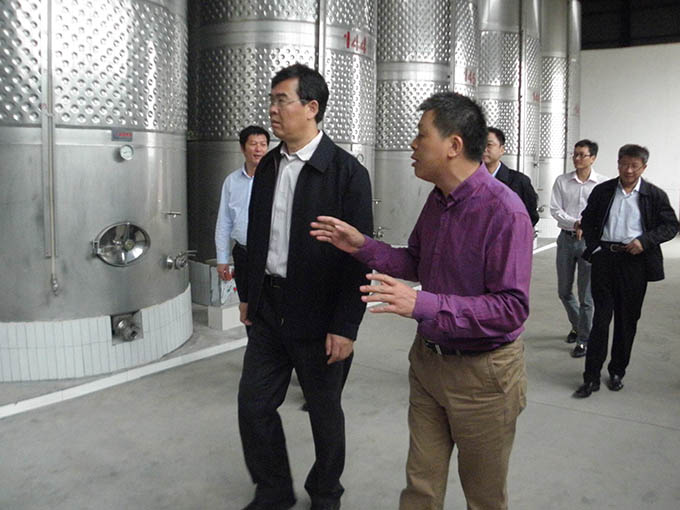 江西省副省长李炳军到华夏五千年生态酒庄有限公司调研 华夏五千年生态酒庄有限公司作为一家南丰蜜桔精、深加工企业,得到了各级政府的关怀和关注。2014年11月1日江西省副省长李炳军到华夏五千年生态酒庄有限公司视察调研。参观了生产车间、产品陈列室,了解了南丰蜜桔酒的生产过程,并品尝了“桔焰”和“桔韵传奇”南丰蜜桔酒,对蜜桔酒的口感赞不绝口。
